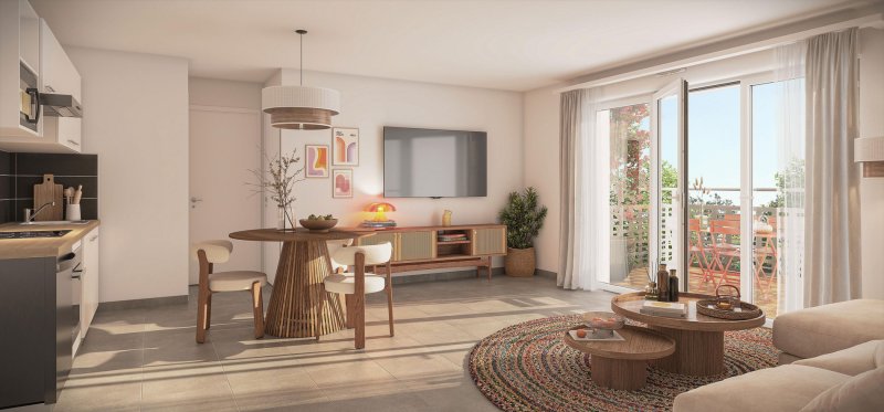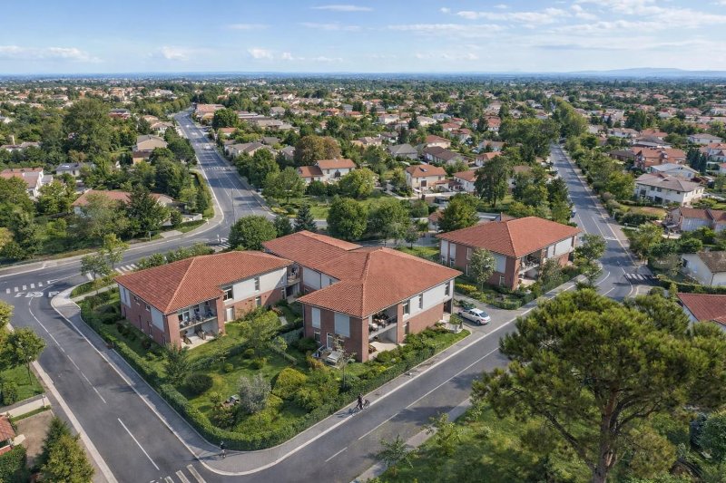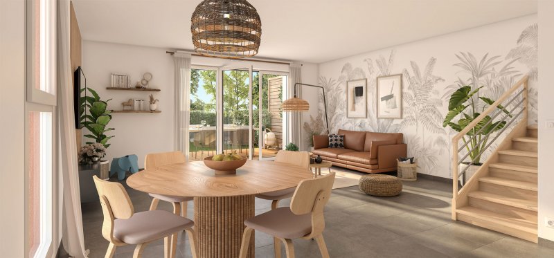 Ce programme neuf à Aucamville comporte 55 logements du T2 au T5, répartis entre deux bâtiments bas et des villas en duplex. Conçu selon la réglementation RE2020, l’ensemble mise sur des matériaux durables, une architecture contemporaine et de larges ouvertures pour des intérieurs lumineux et sobres en énergie. Chaque habitation dispose d’un extérieur privatif (balcon, loggia, terrasse ou jardin). Le projet comprend un cœur d’îlot végétalisé et plus de 1 100 m² d’espaces verts communs.