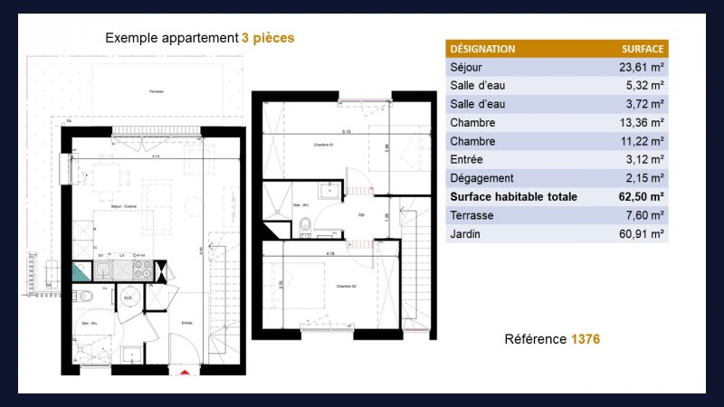 Ce programme est en réalité une ancienne maison réhabilitée à neuf. 6 logements neufs vont y être construits : 1 studio, 3 deux pièces dont un en duplex et 2 trois pièces en duplex également. Profitant des dernières normes de construction, les appartements sont non seulement économes en énergie mais sont également confortables en été comme en hiver. Des prestations de qualité sont au rendez-vous : cuisine équipée, pompe à chaleur air/air, placard aménagé, arrosage intégré. 9 places de parking viennent en renfort et sont pré-équipées pour les véhicules électriques.