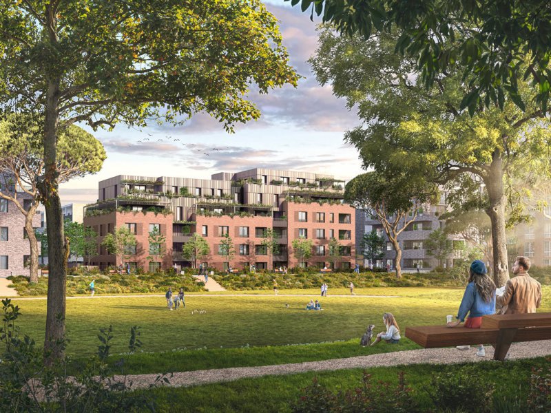 Les jardinières en balcon et le dessin des jardins a été composé avec un paysagiste selon l’envie d’offrir aux habitants un cadre de vie animé par une végétation en mouvement au gré des saisons. Cette composition sobre abritera les futurs habitants dans une construction proposant une alliance entre hi-tech, performance environnementale et confort. Domotique et réseau de chaleur se conjuguent à la générosité des espaces. Dessinés par de larges ouvertures et terrasses, les appartements offrent aux habitants un quotidien immergé dans un quartier calme et verdoyant.