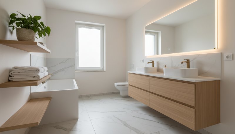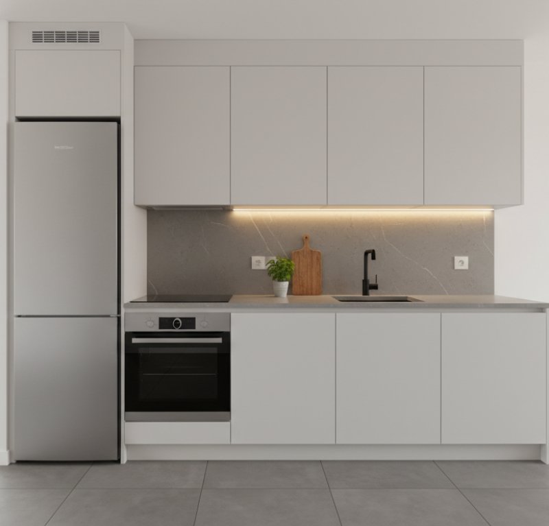 Le stationnement inclut un parking couvert, des places aériennes et un local à vélos, avec accès sécurisé par portail télécommandé. Le programme respecte la réglementation thermique RT 2012, avec chaudières individuelles à condensation, volets roulants électriques, sèche-serviettes, thermostat d’ambiance et parois de douche. Les finitions intègrent sols vinyle, meuble vasque avec miroir, mitigeurs et serrures 3 points. Des espaces verts aménagés entourent le bâtiment.