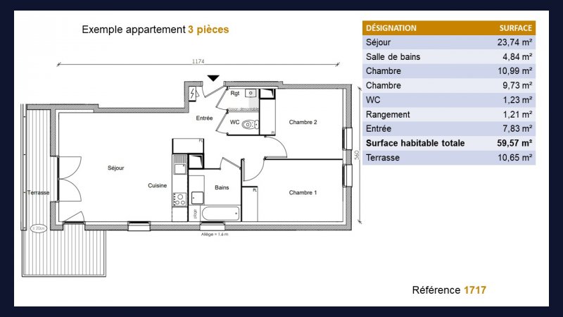 Conforme RE2020, le projet intègre isolation soignée, menuiseries double vitrage, chaudières gaz individuelles et ventilation optimisée. Prestations : parquet dans les chambres, carrelage 45x45, faïence toute hauteur, cuisines équipées, placards aménagés, volets roulants électriques.