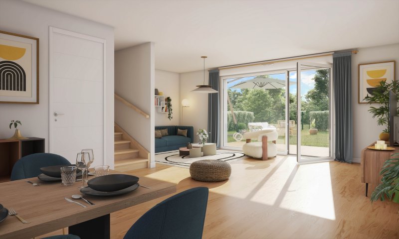 Côté performance énergétique, les maisons sont conformes à la RE2020 et disposent d'un ballon thermodynamique et d'une pompe à chaleur pour limiter les consommations. Du reste, on retrouve également des volets roulants électriques (séjour/cuisine), une serrure 3 points A2P sur la porte palière, des détecteurs de fumée... Des clôtures doublées d’une haie, ainsi que des espaces verts communs complètent l'ensemble.